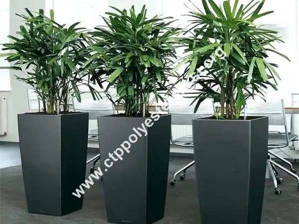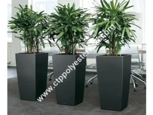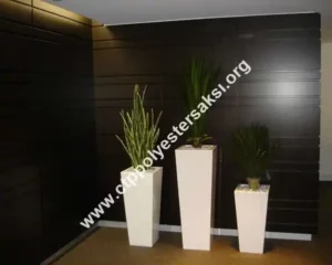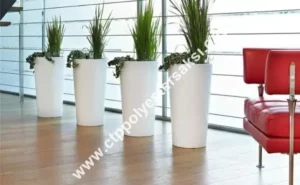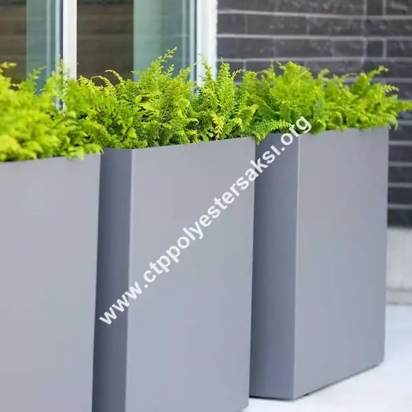 Silindir ve kule model CTP polyester saksılar, ince uzun formuyla hem alan derinliği yaratır hem de estetik görünüm sunar. Fiber malzemeden üretilen bu saksılar, dekorasyonda dikey vurgular oluşturmak için idealdir. Modern ve mimari projelerde sıkça tercih edilir.